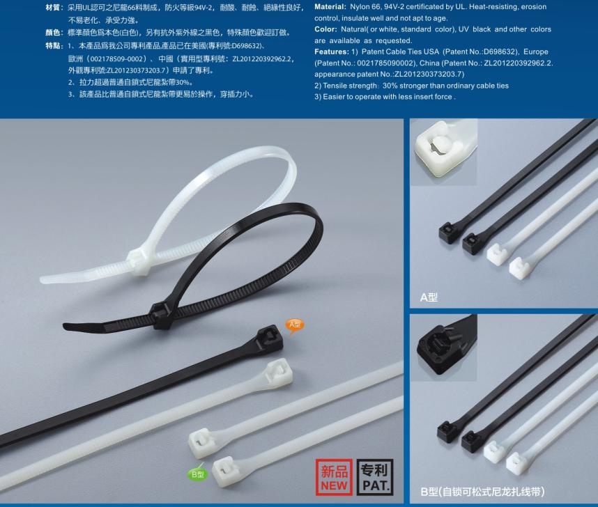 Rally Enhanced HONT patented self-locking nylon cable tie features: 1, the product of our patented products, products in the US (Patent Number: D698632), Europe (002178509-0002), China (utility model patent number: ZL201220392962.2, Appearance patent number: ZL201230373203.7) applied for a patent ;