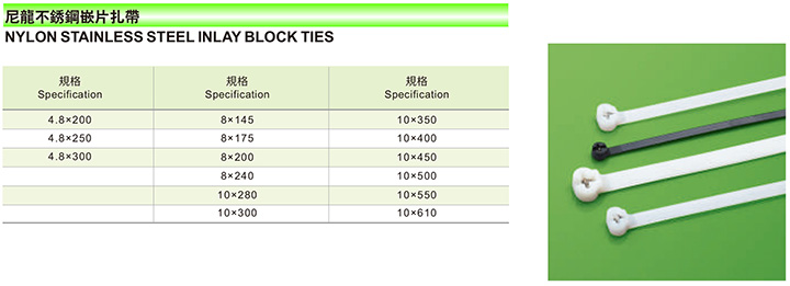 Nylon stainless steel inlays block cable ties