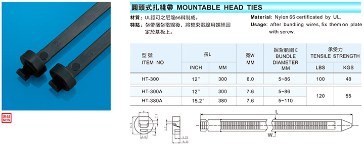 Oval head cable ties