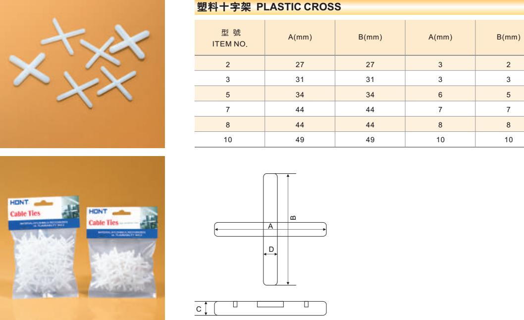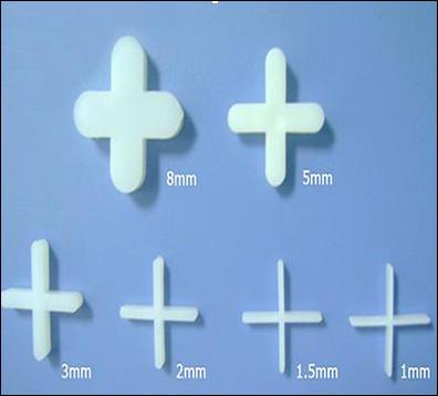 Plastic cross,Ceramic tile locating crosses Ceramic tile plastic cross is a used to adjust the ceramic tile seam size plastic products. Material: using PP,HDPE, PA. Features: good toughness, good tensile, non-toxic, no smell, impact resistance, moisture resistant, chemical resistance. Color: porcelain white, milky white, and other various colors. Specification: width: 1.0 mm --- 10.0 mm.