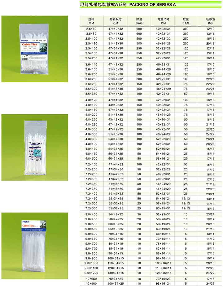 Tag card separated polybag nylon cable ties