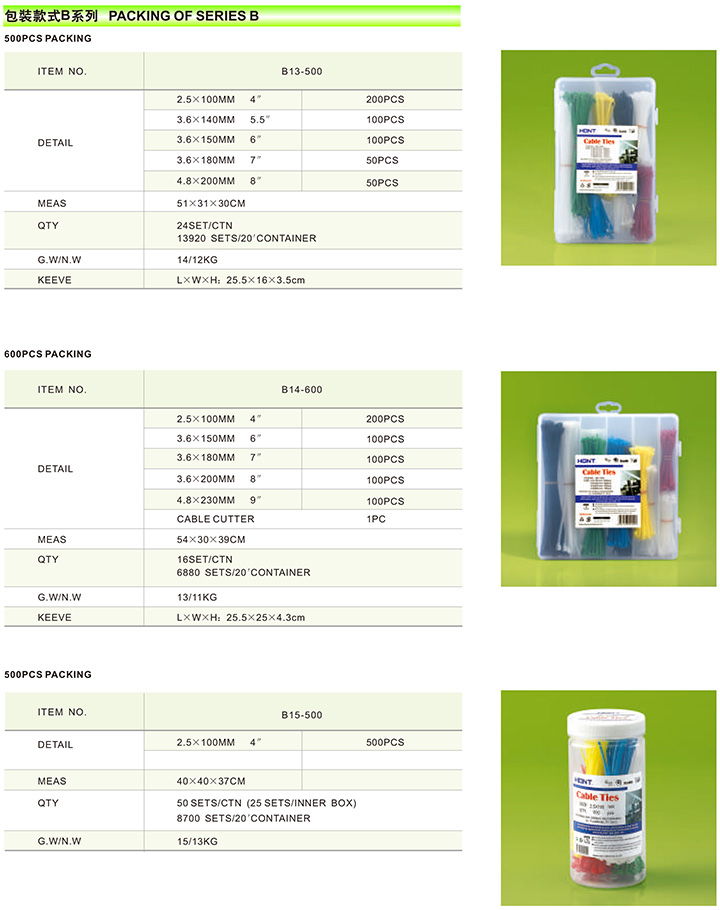 Plastic box packed nylon cable ties